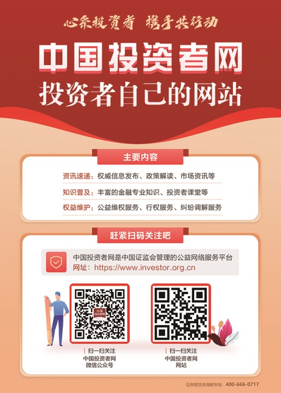 如果大家想了解最權(quán)威投資知識(shí)、如何維護(hù)投資權(quán)益、證監(jiān)會(huì)最新資訊等,歡迎大家積極關(guān)注“中國(guó)投資者網(wǎng)”公眾號(hào)和網(wǎng)站。