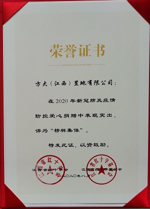 820日,由江西省文明辦、省民政廳、省衛(wèi)健委、省扶貧辦、省工商聯(lián)、省紅十字會(huì)共同主辦的紀(jì)念世界人道主義日暨2020贛鄱愛心榜樣發(fā)布會(huì)在南昌舉行。方大集團(tuán)旗下子公司方大智創(chuàng)科技有限公司榮獲“2020贛鄱助力阿克陶脫貧攻堅(jiān)榜樣集體”榮譽(yù),方大置地(江西)有限公司榮獲“2020年新冠疫情肺炎疫情防控愛心榜樣集體”榮譽(yù)。